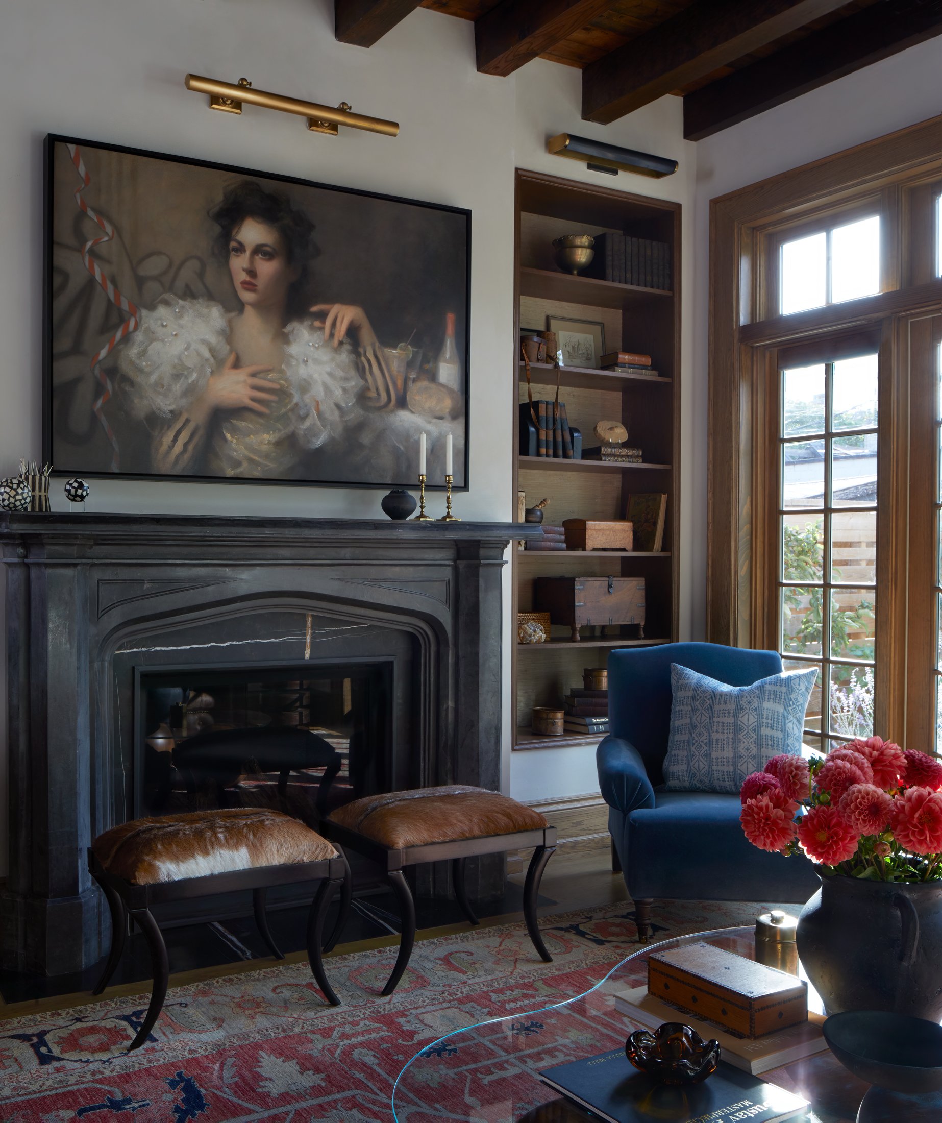 When homeowners Mark and Stefan asked us to design the interiors of their 2 story addition, we were pretty excited based on their great sense of style and how the house was already filled with antiques and tons of character. We leaned into the architect’s plan of exposed timber beams in the Great Room and went for an old English Manor House vibe in the space. In the second floor bedroom and ensuite, we created a rich and layered principal retreat, still keeping with the old world feel of the downstairs. When we completed the work on the addition, we were tasked with refreshing the Front Room/Foyer; turning an underwhelming office into a showstopper; and transforming Mark and Stefan’s previous bedroom into a spare room guests find hard to leave. Next up — the kitchen and the guest bathroom! Can’t wait to get our hands on more of this beautiful home.