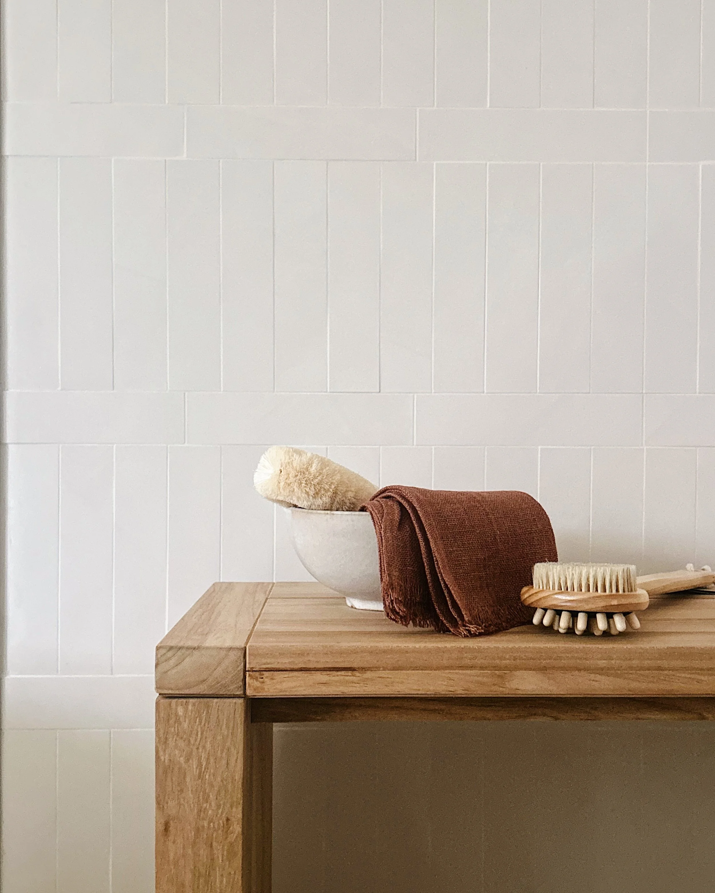 For the past 10+ years, homeowners Wendy and Gerry had been living with not one but two ensuite bathrooms just off their principal bedroom. Each of them had their own space but they were dated and dysfunctional. Turning two bathrooms into one meant that we had a large footprint to work with - perfect for fitting in all their bathroom needs and still create an open, airy atmosphere. They wanted an oasis with a spa-like feel so we brought in a quiet palette of natural materials including a patterned marble tile throughout, a pebble stone shower floor, and a floating white oak vanity. The large space meant we could fit in a private water closet, a shower with a teak bench, and a freestanding soaker tub to get the full spa experience. The double vanity provides plenty of storage with space for towels, cleaning supplies, and his and hers tall cabinets. To top it all off we styled the space just like we would any other room in the house - with a vintage runner, antique stool, and a pop of pattern on the roman blind. Now it’s time to relax.